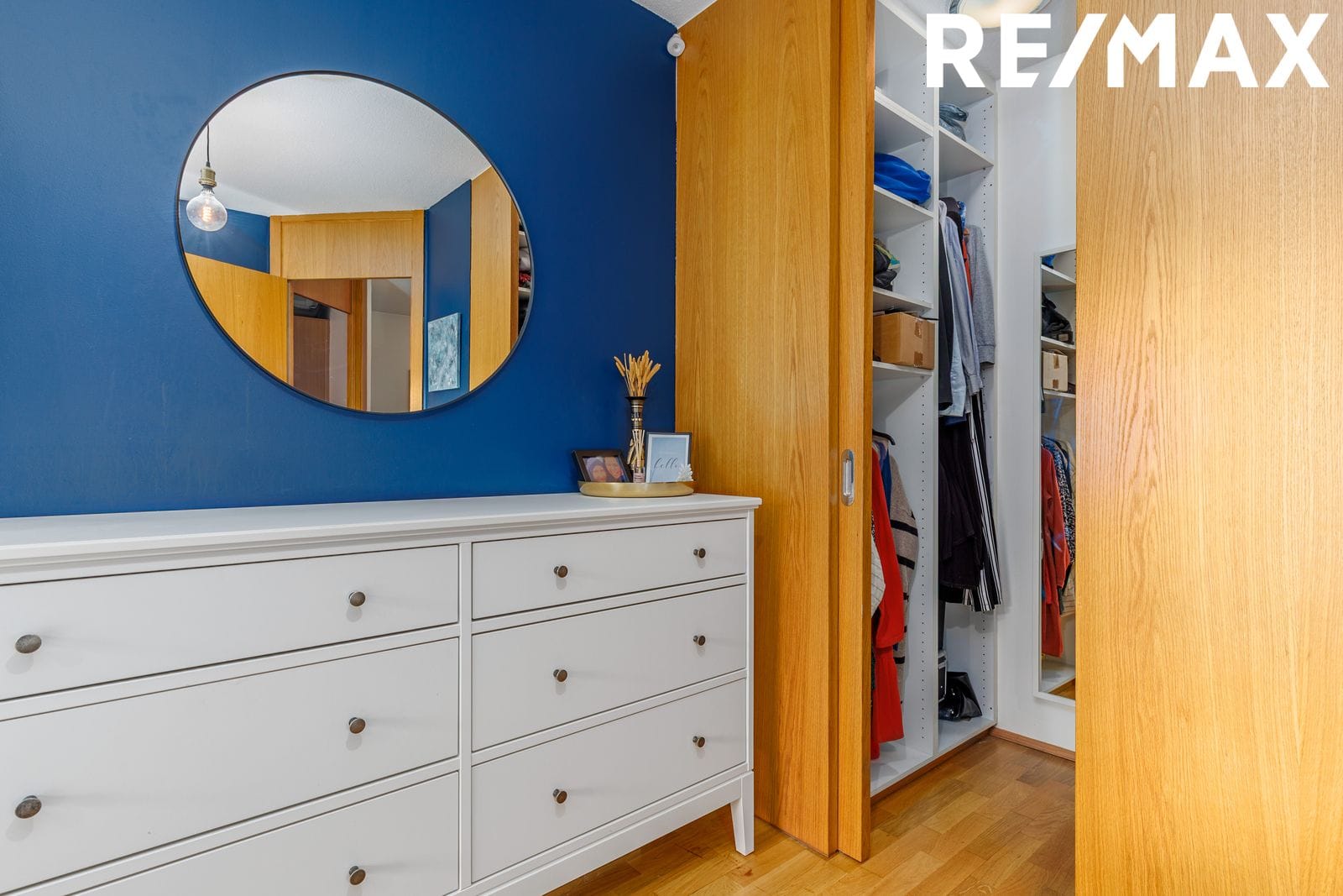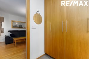 Forstofa: Flísar á gólfi. Fataskápur.