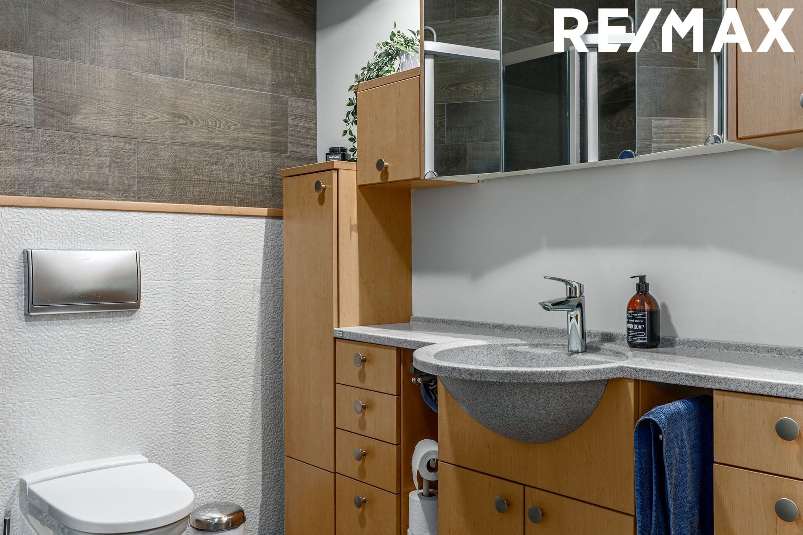 Baðherbergi: Flísalagt með fallegum dökkum flísum. Sturtuklefi. Alno innrétting. Upphengt salerni. Tengi fyrir þvottavél og þurrkara.