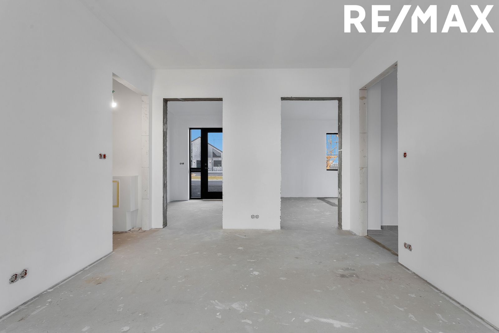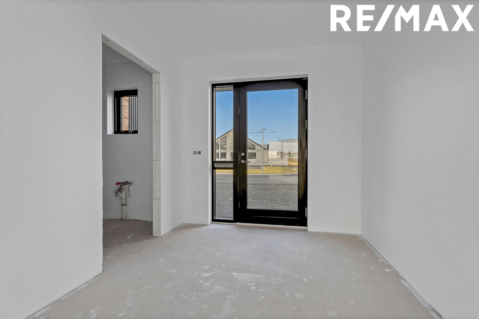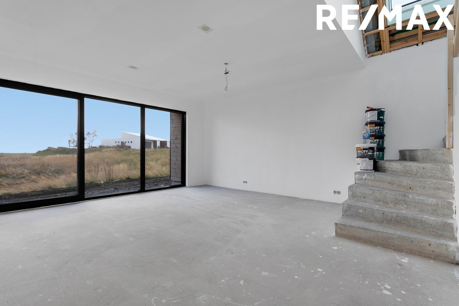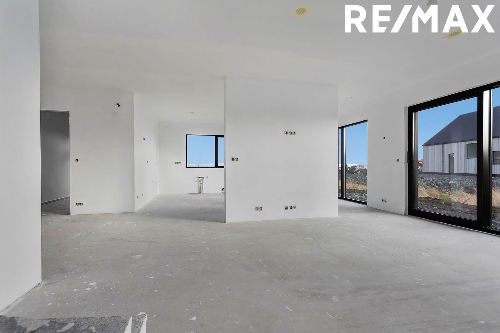 Veggir: Steyptir útveggir eru sandspartlaðir og grunnaðir að innan. Hlaðnir innveggir eru sandspartlaðir og grunnaðir. Handrið og handlistar innanhúss ekki innifalinn.