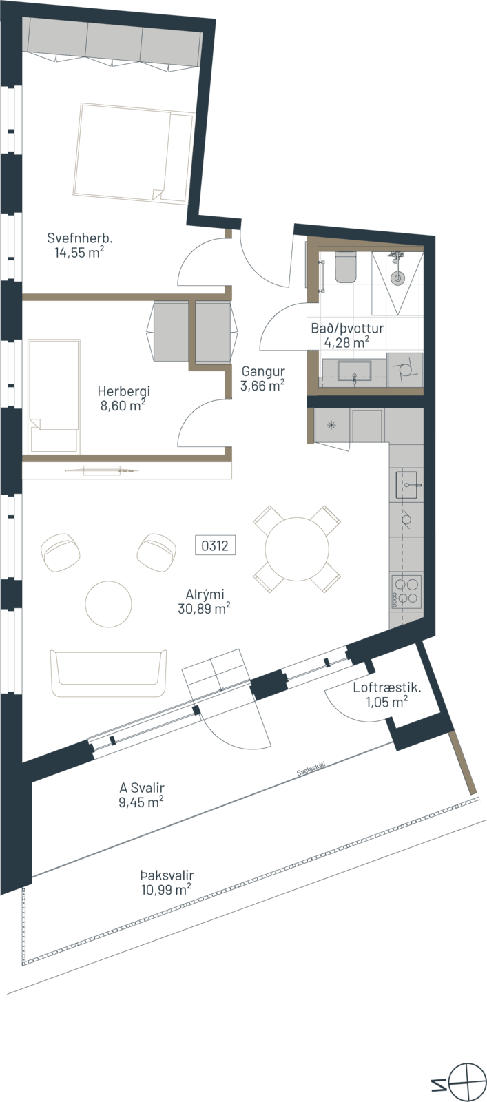 Íbúð 312: Vel skipulögð og björt þriggja herbergja íbúð á þriðju hæð, íbúðin er 84,2 fm með óskertu sjávarútsýni úr stofu og svefnherbergjum. Tvískiptar svalir klæddar með vönduðum bambus. Svölum er skipt með svalalokun. Bílastæði fylgir eigninni í bílakjallara. 7,3 fm geymsla í sameign.