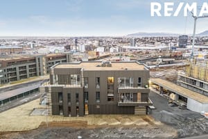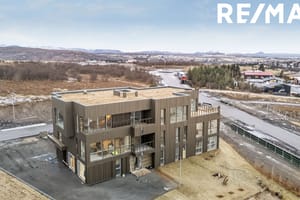 Húsið:Arkitektar og aðalhönnuðir hússins eru Sen&Son arkitektar ehf. Húsið er steinsteypt þriggja hæða fjölbýlishús með 7 íbúðum í einum stigagangi með lyftu. Á 1. hæð er anddyri, geymslur íbúða, tæknirými og tveir innbyggðir bílskúrar. Á 1. hæð eru einnig tvær glæsilegar íbúðir með beinu aðgengi út í garð. Á 2. hæð hússins eru þrjár virkilega flottar íbúðir og á 3. hæð hússins eru svo tvær stórglæsilegar íbúðir, en með þeim fylgja bílskúrarnir. Á lóðinni er bílageymsla með 7 bílastæðum. Bílageymslan er opin að hluta með lokuðum hliðum og upphituðu gólfi. Gert er ráð fyrir lagnaleið að hverju stæði fyrir möguleika á rafhleðslustöð.