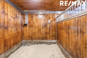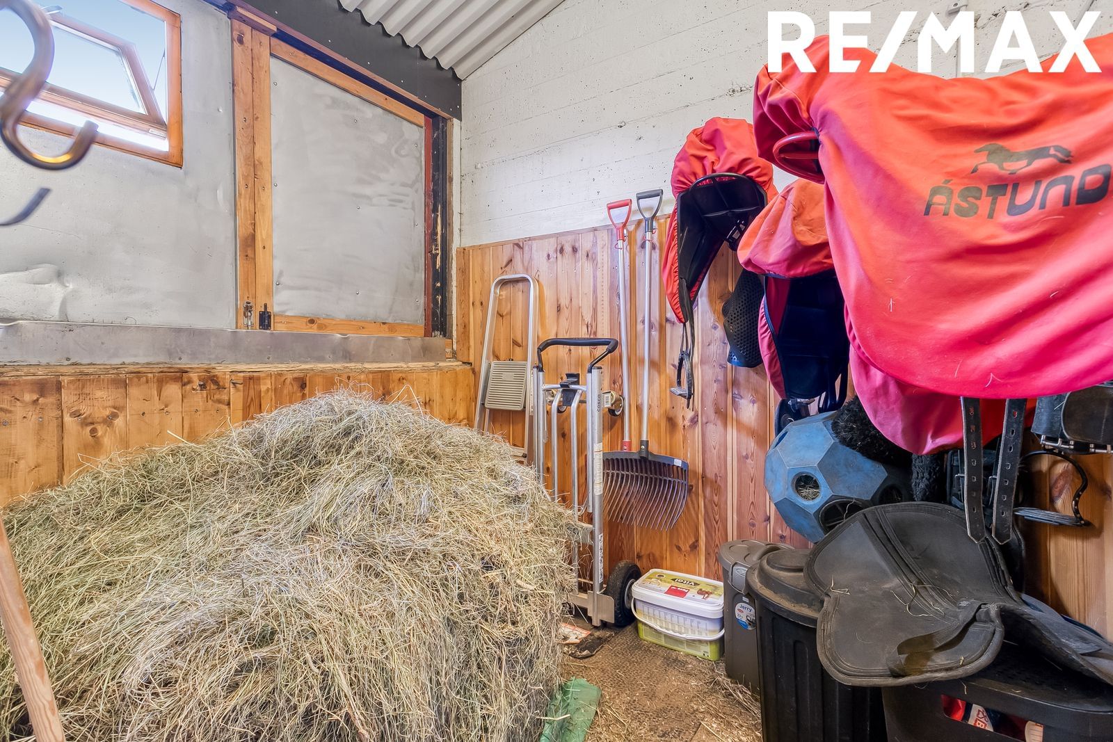 Hlaða/Hnakkageymsla: Hnakkageymsla og hlaða eru í sama rými. Kjallari er undir hlöðu og hnakkageymslu sem nýtist vel sem geymsla fyrir spæni o.fl.