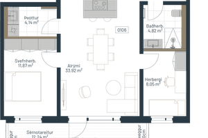 Íbúð 106: Vel skipulögð og björt þriggja herbergja, 87,9 fm íbúð á jarðhæð ásamt stæði í bílageymslu. Rúmgóður 12,24 fm sérafnotareitur með vönduðum bambus timburpalli. Sér þvottahús innan íbúðar með veglegri innréttingu. Sér 8,9 m2 geymsla í sameign.