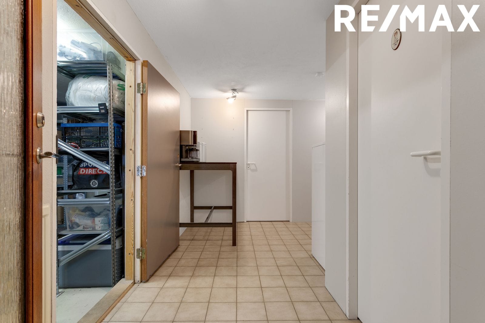 Nýlegt og vel útbúið þvottahús er með góðum hirslum og vinnuaðstöðu. Þaðan er útgengt á bakpall og út í garðinn.