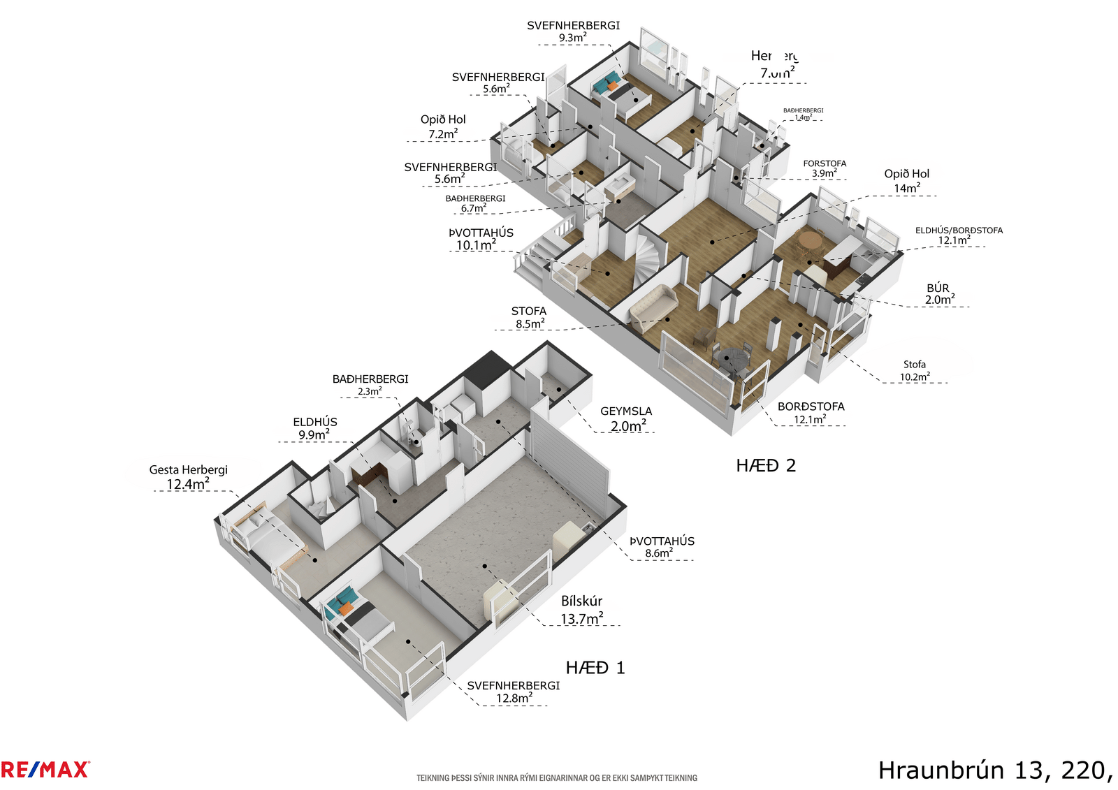 Eignin telur alls 6 herbergi og býður upp á þann möguleika að útbúa aukaíbúð á jarðhæð með sérinngangi. Hér er um að ræða glæsilega og fjölskylduvæna eign á rólegum og grónum stað, í göngufæri við skóla, leikskóla, sundlaug, fallegt útivistarsvæði og miðbæinn. Allar nánari upplýsingar veitir Guðrún Þórhalla Helgadóttir, löggiltur fasteignasali í síma 820-0490 eða á netfangið gudrun@remax.is.