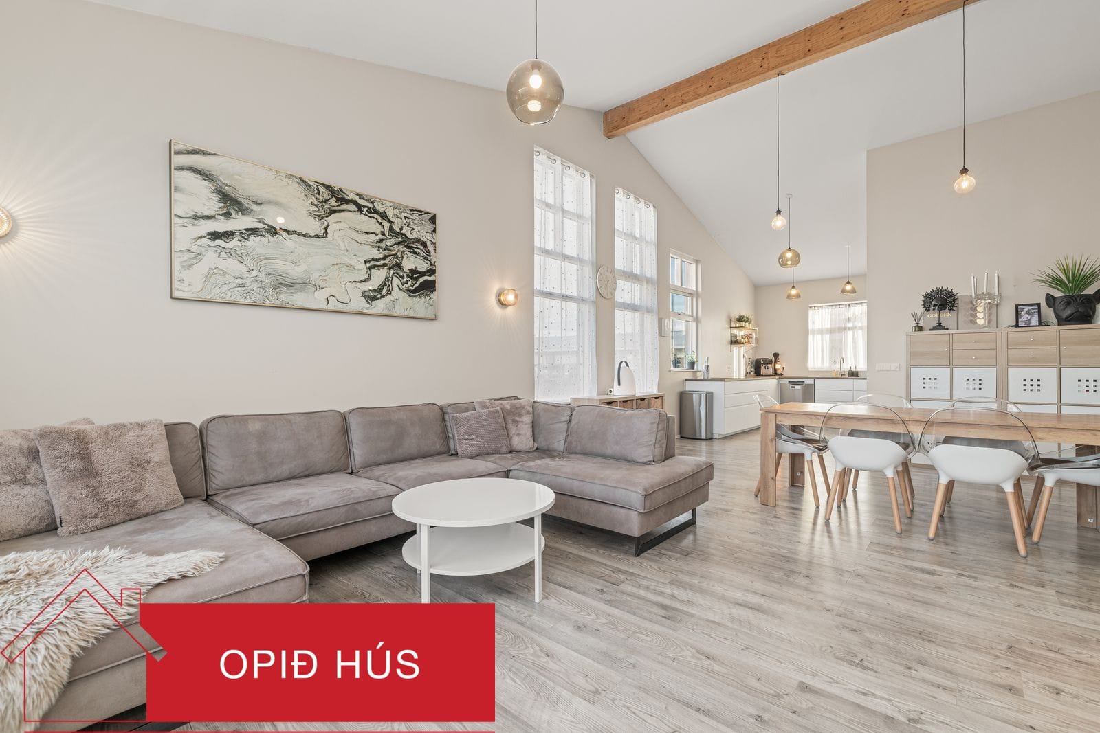Eignin skiptist í forstofu, borðstofu, stofu, eldhús, fjögur herbergi, baðherbergi og bílskúr. Eignin er skráð hjá Húsnæðis- og mannvirkjastofnun 180,5 m2.**HÉR MÁ NÁLGAST 3D MYNDBAND AF EIGNINNI, INNI- OG ÚTI. KÍKTU Í HEIMSÓKN!*VINSAMLEGA SMELLIÐ HÉR TIL AÐ BÓKA TÍMA Í SKOÐUN 19. FEBRÚAR Söluyfirlit má nálgast hérNánari lýsing:Forstofa er inn af steyptri stétt. Mjög rúmgóð með