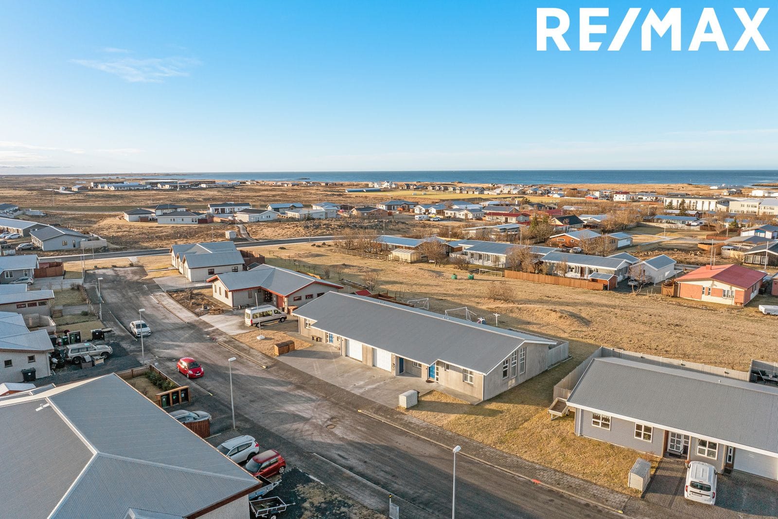 Sigrún Gréta hjá RE/MAX kynnir 5 herb. parhús á einni hæð að Breiðhóli 24 í Sandgerði í Suðurnesjabæ. Innangengt er inn í bílskúr frá íbúðarrými og er bílskúr með millilofti. Alrýmið er einnig með aukinni lofthæð og þar er gengið út á afgirta verönd með heitum potti. Gólfhiti er í öllu húsinu. Virkilega falleg eign í nýlegu hverfi og er opið grænt svæði aftan við lóð húss. Í Sandgerði er leik- og grunnskóli, íþróttamiðstöð með sundlaug og ýmis þjónusta. Aðeins um 15 mínútna akstur er í frekari þjónustu og verslanir í Reykjanesbær. Svæðið er þekkt fyrir fallega strandlengju þar sem oft má sjá seli, fjölbreytt fuglalíf og rólegt umhverfi þar sem stutt er í gönguleiðir meðfram sjónum.
