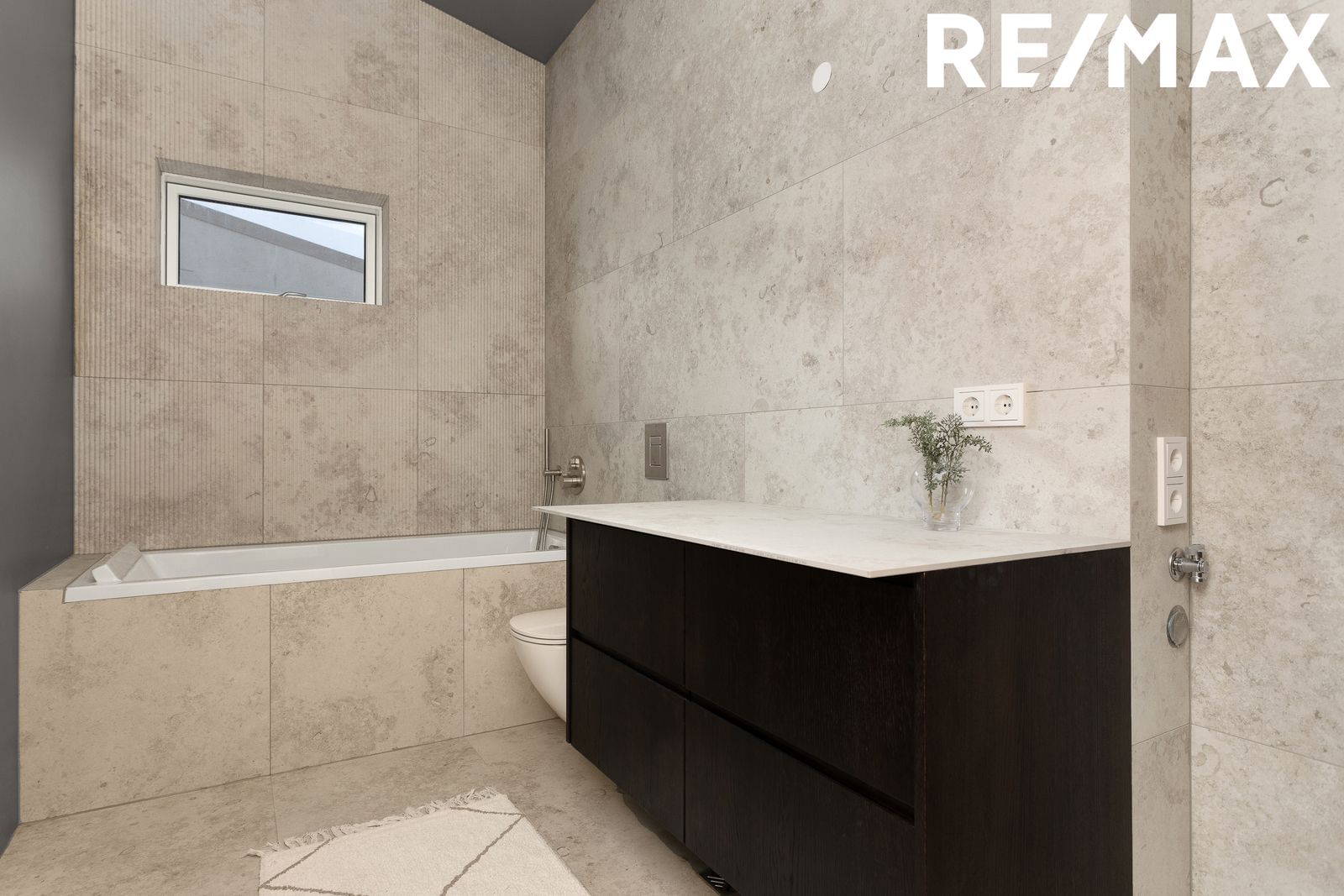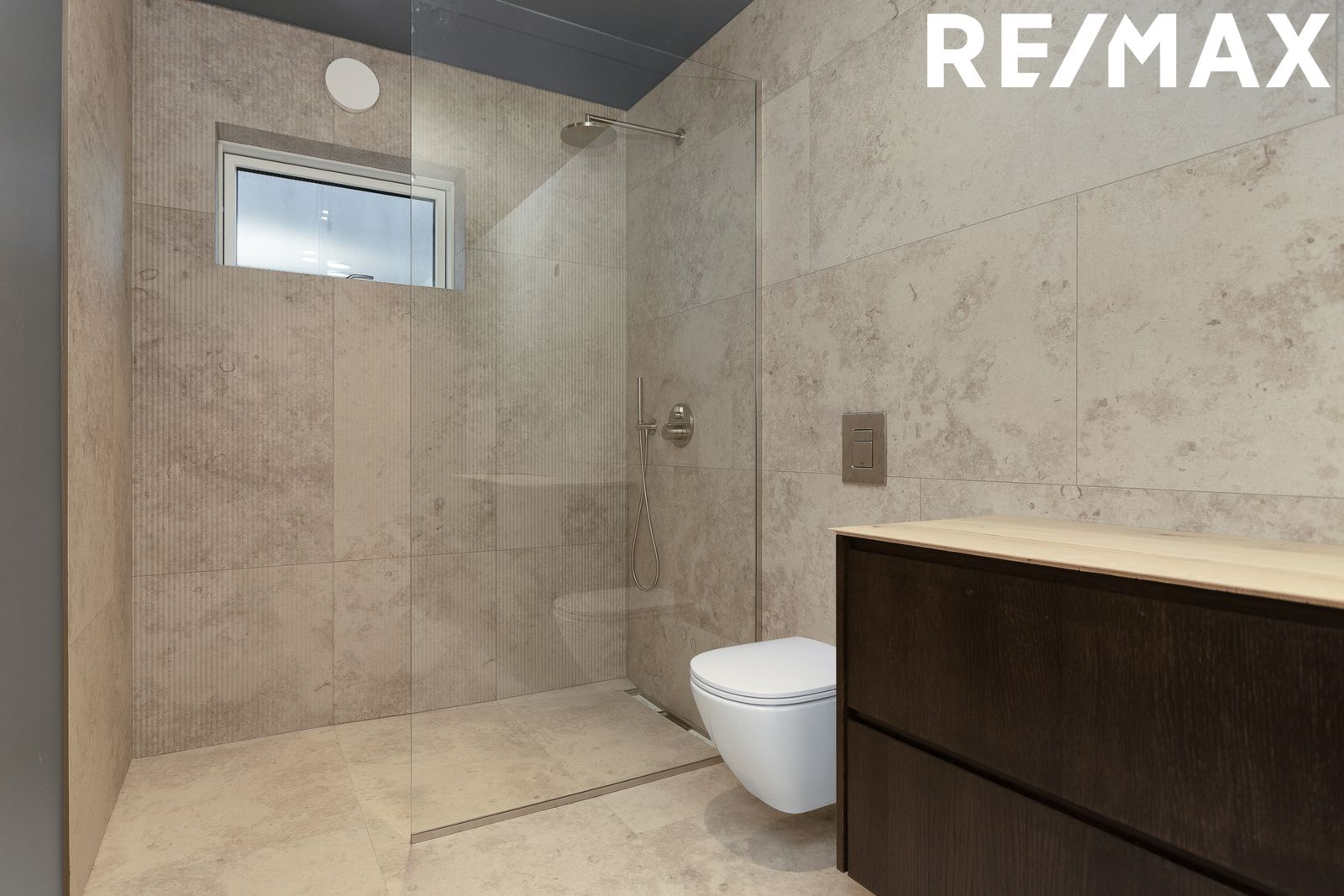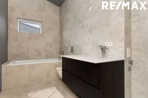 Baðherbergi 2 er flísalagt í hólf og gólf. Upphengt klósett, innrétting, sturta, gluggi fyrir loftun og innrétting fyrir þvottavél og þurrkara.