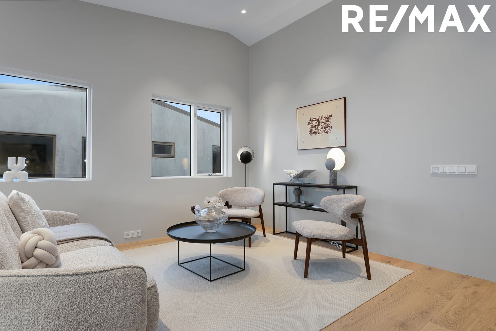 Efri hæð er með svefnherbergi, baðherbergi, eldhús og stofur í opnu rými. Möguleiki á aukaherbergi við hlið baðherbergis.