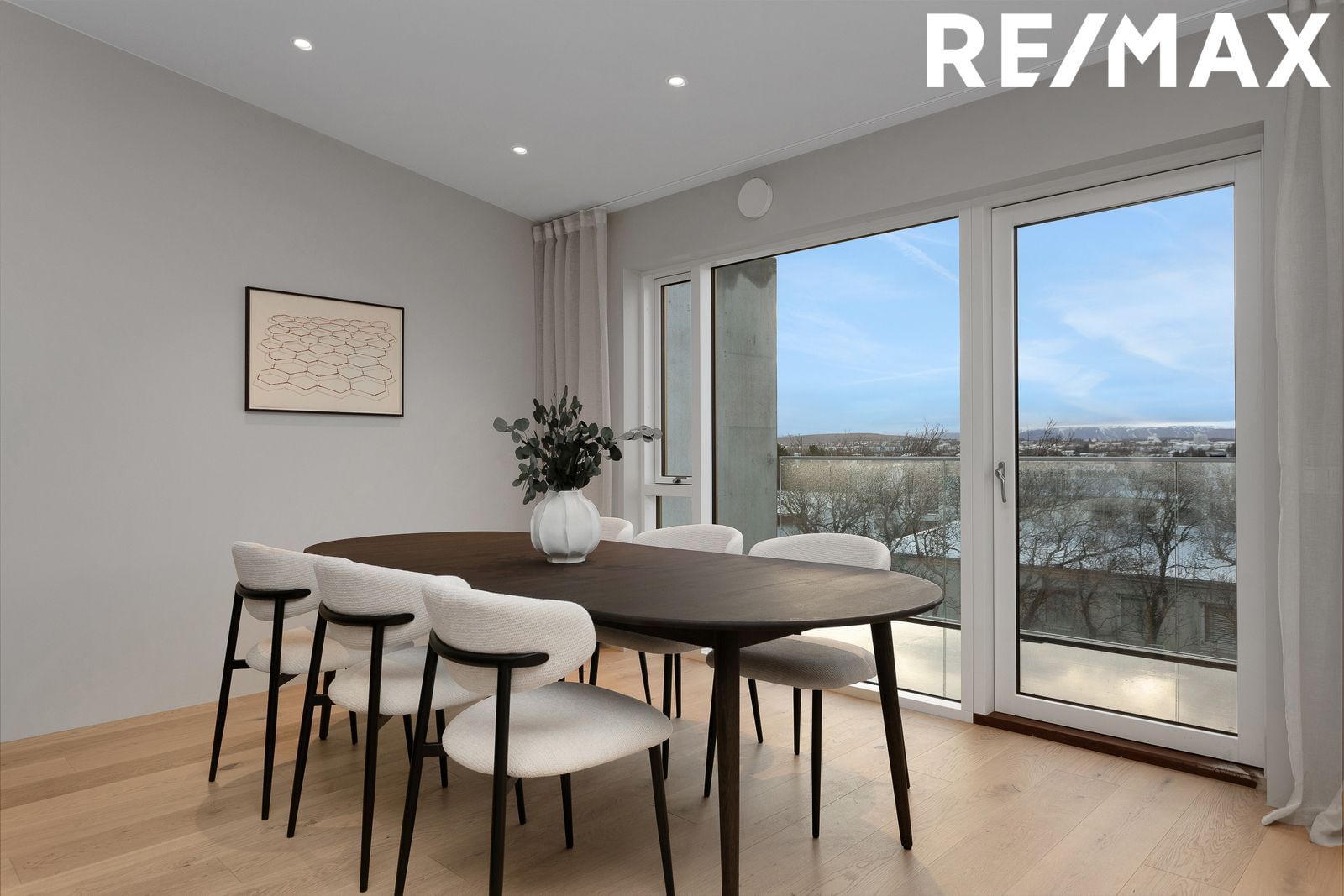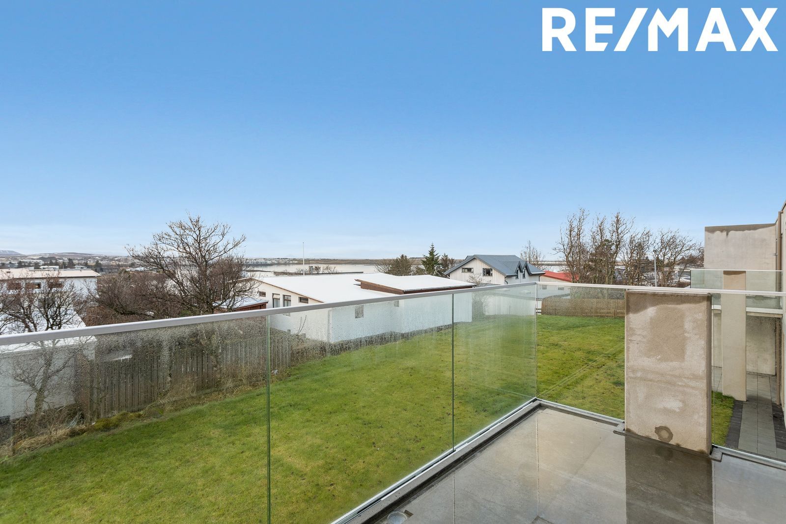 Svalir eru með glerhandriði og snúa í suðurátt.