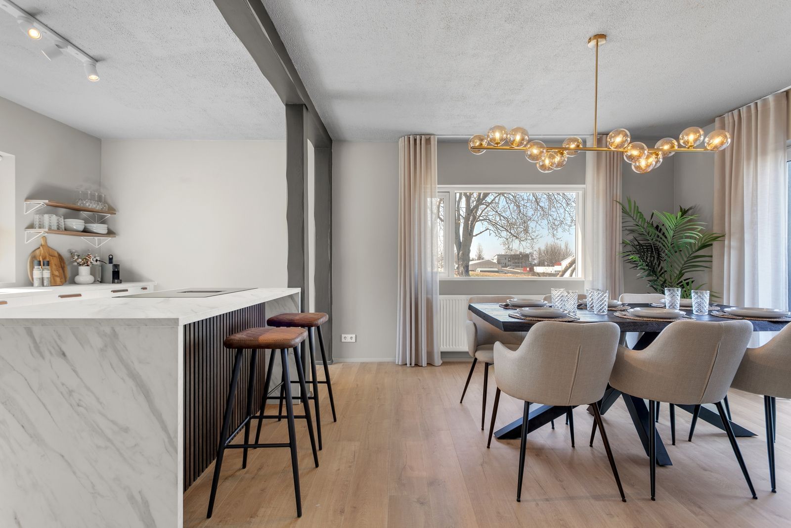 Eldhús: eldhúsinnrétting frá HTH og borðplötur frá Fanntófell. Undirlímdur vaskur og niðurfellt helluborð. Innfeldur ísskápur, frystir og uppþvottavél. Eyja með helluborði.