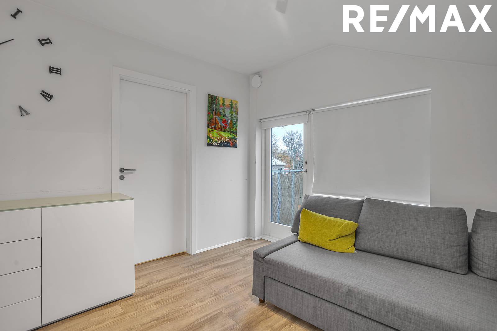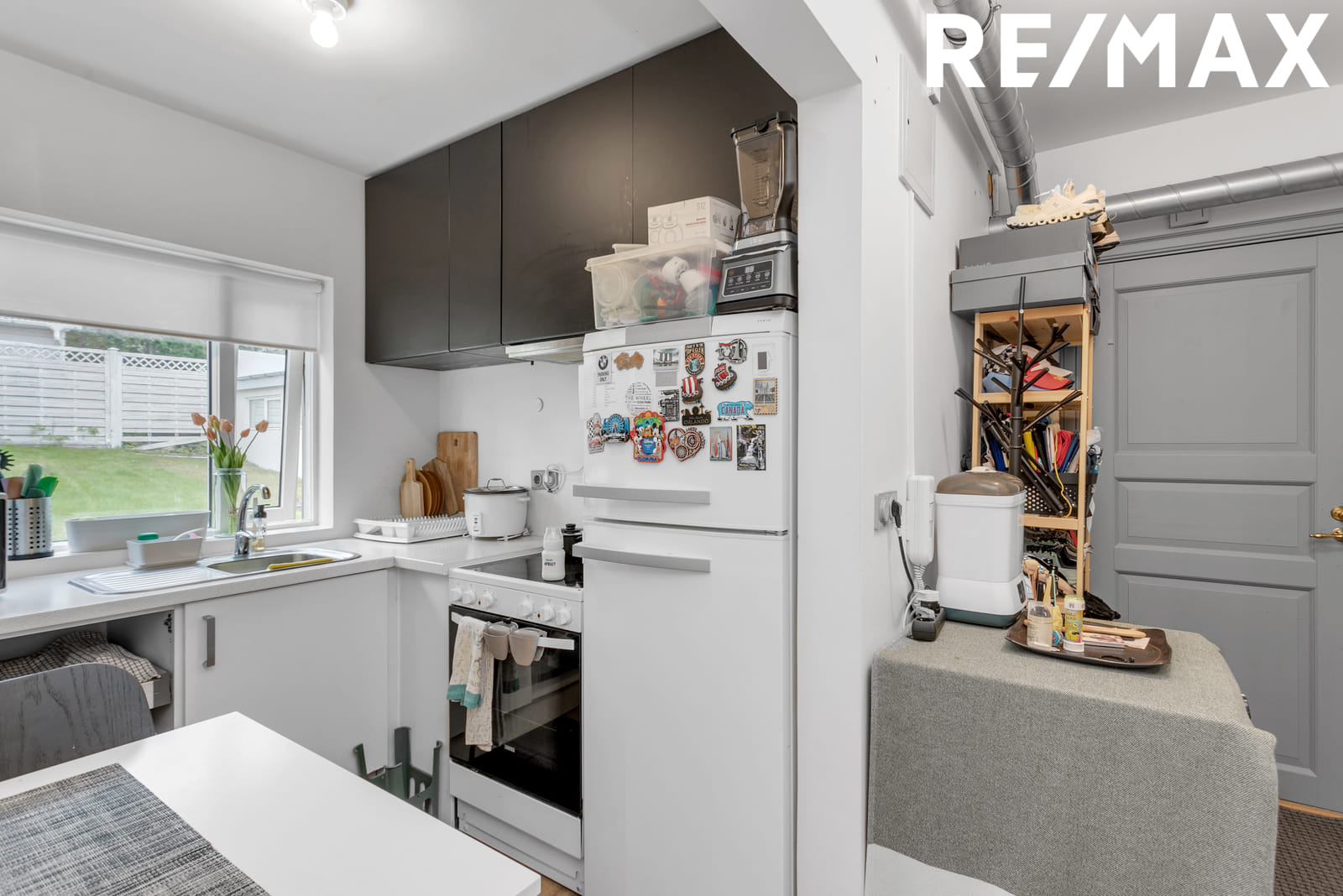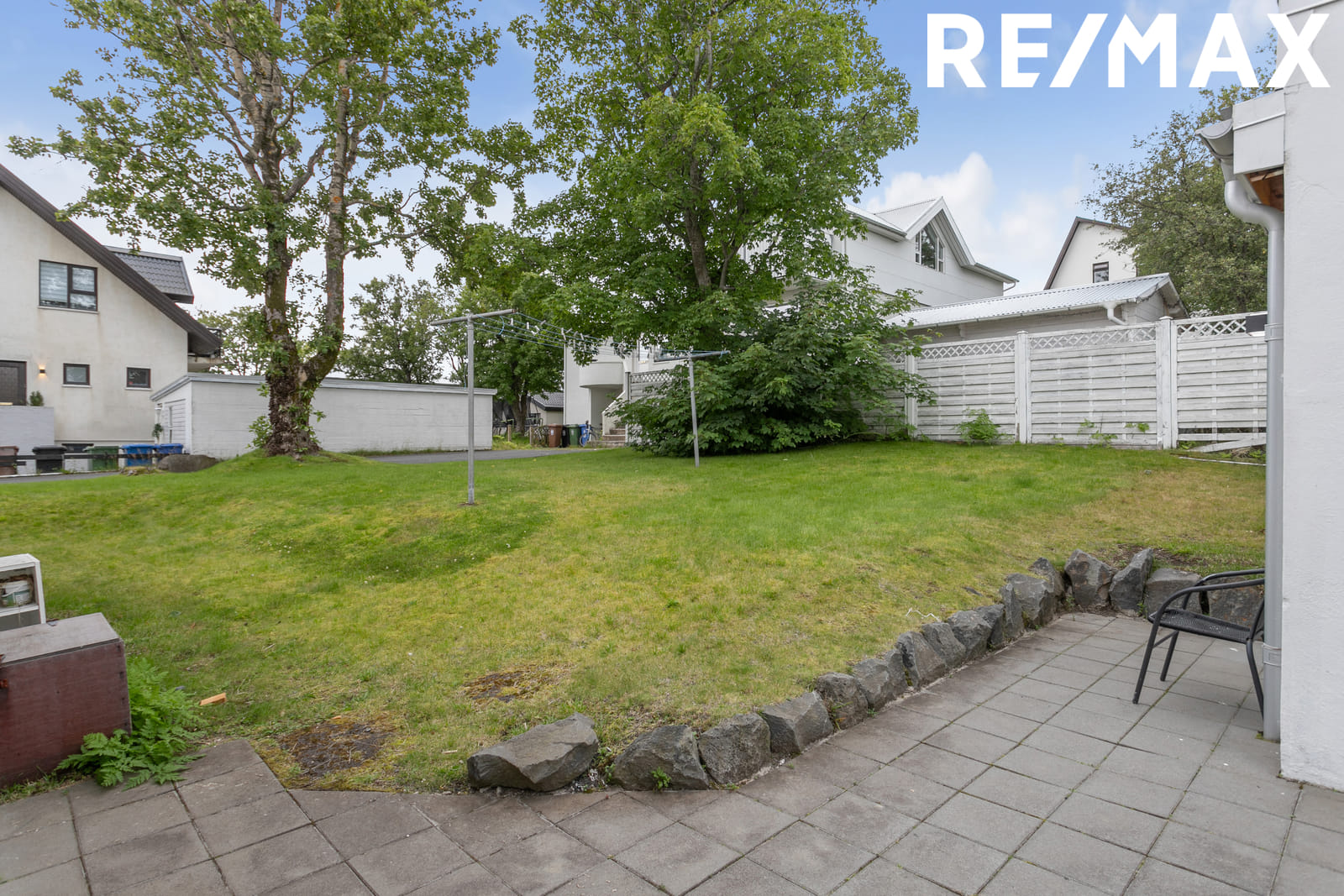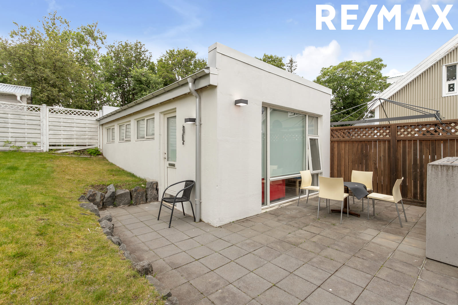 Bílskúrinn hefur verið endurnýjaður frá grunni. Þar er nú björt og falleg fullbúin stúdíóíbúð. Í alrými er fullbúið eldhús og stofa. Baðherbergi flísalagt í hólf og gólf, sturtuklefi og vegghengt salerni og innréttingu undir handlaug. Gólfhiti er í íbúðinni. Stúdíóbúðin deilir þvottahúsi með íbúðinni.