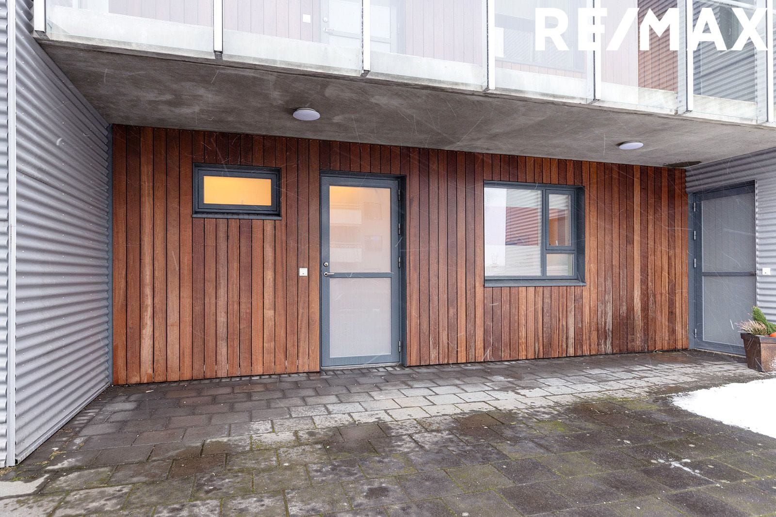 Góður sér inngangur. Rúmgóð forstofa með fataskáp. Gott hol. Tvö góð svefnherbergi með góðum skápum. Rúmgott þvottahús. Fallegt flísalagt baðherbergi með glugga, gott baðkar með sturtuaðstöðu og vönduð baðinnrétting. Björt og falleg stofa með útgengi á stóra afgirta verönd. Sérlega fallegt eldhús með fallegri innréttingu og vönduðum tækjum. Gólfefni eru parket og flísar. Geymsla í kjallara ásamt hefðbundinni sameign. Íbúðinni fylgir bílastæði í bílakjallara með tengi fyrir hleðslustöð. Mjög gott aðgengi. Sameiginleg hjòla- og vagnageymsla.