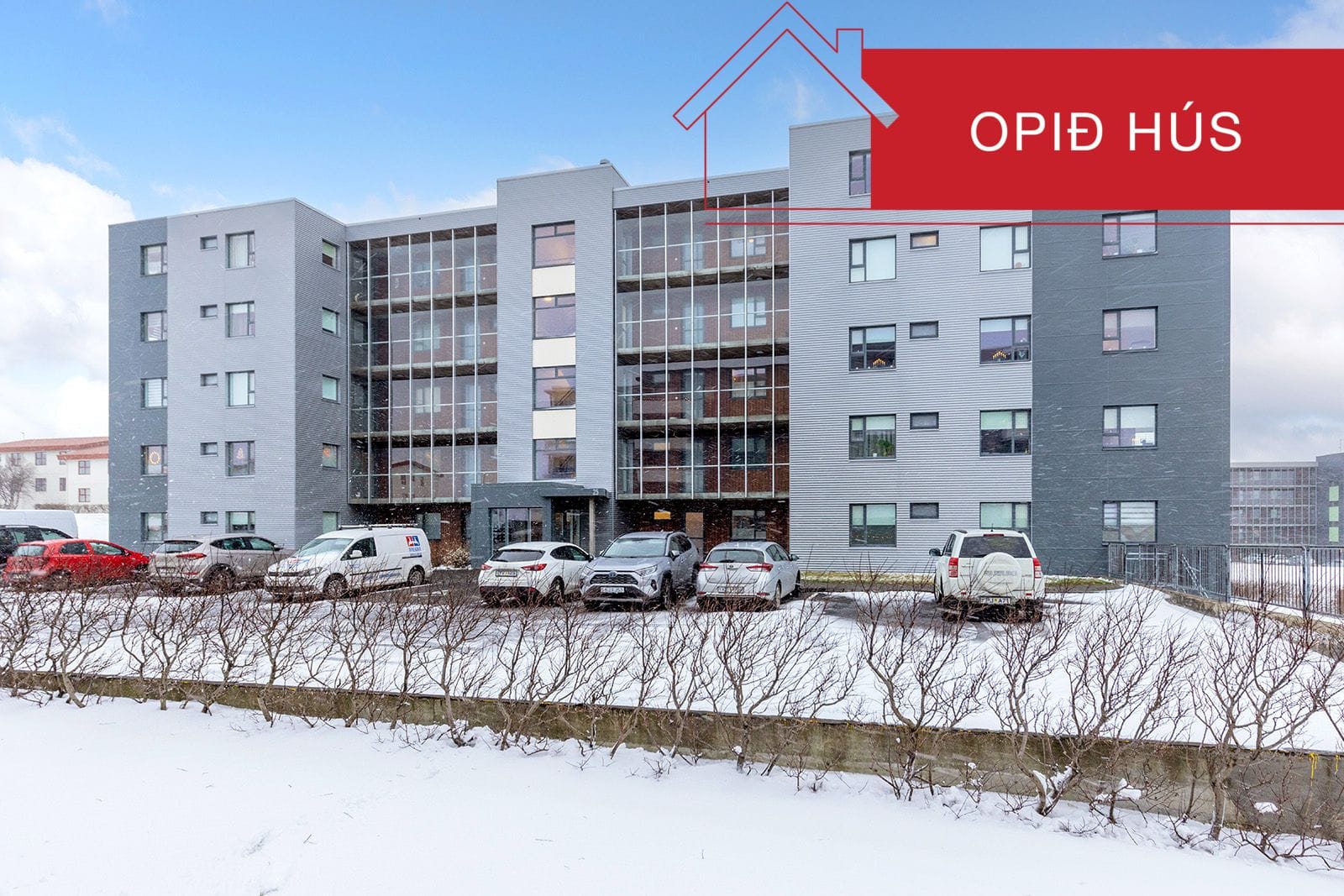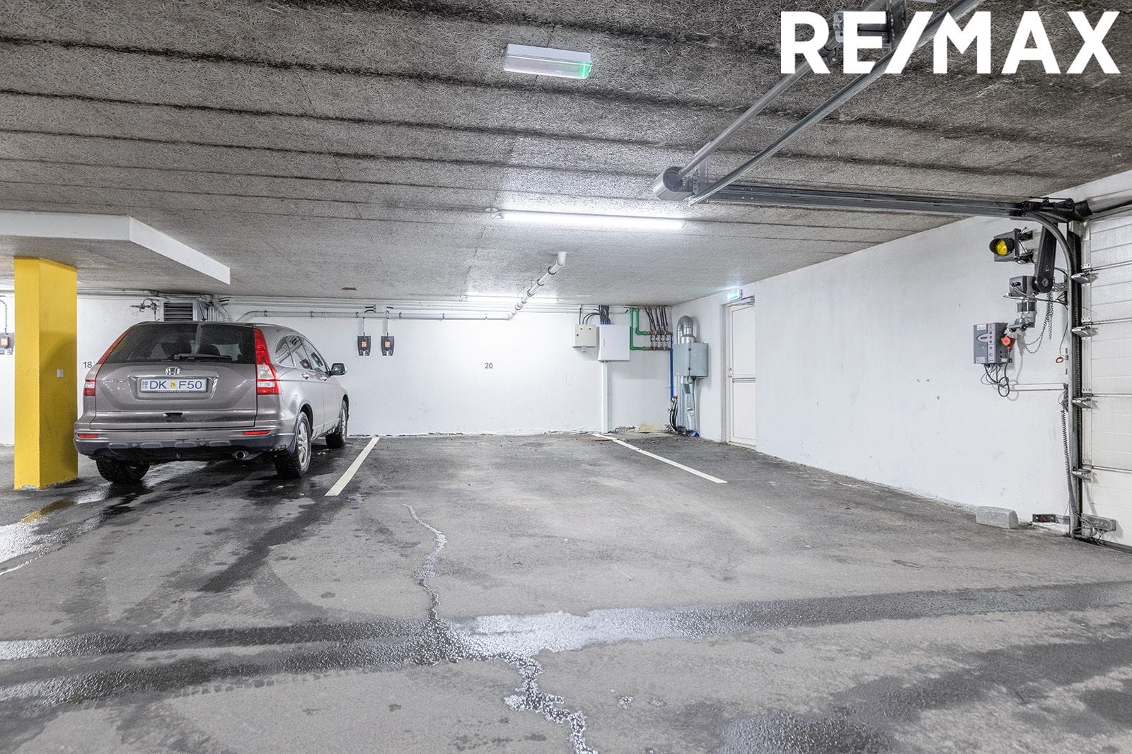Bílakjallari: mjög rúmgott bílastæði merkt B20, tengi fyrir hleðslustöð, mjög gott aðgengi.