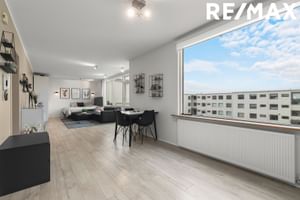 RE/MAX og Þorsteinn Yngvason, lögmaður / löggiltur fasteignasali, kynna í einkasölu fallega og rúmgóða þriggja herbergja íbúð á efstu hæð við Hjallabraut 5 í Hafnarfirði.