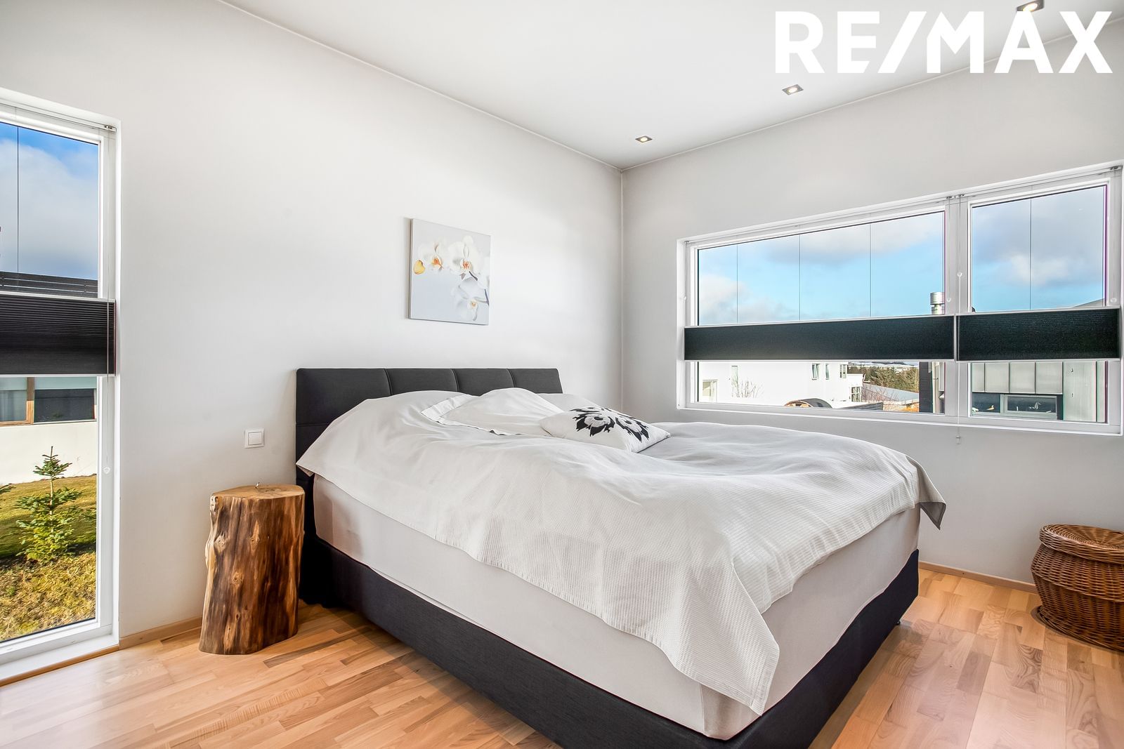 Öll herbergin eru með parketi á gólfum. Flísar á baðherbergjum og þvottahúsi, gluggar á öllum rýmum og gólfhiti í öllum rýmum nema í bílskúr en þar eru ofnar.