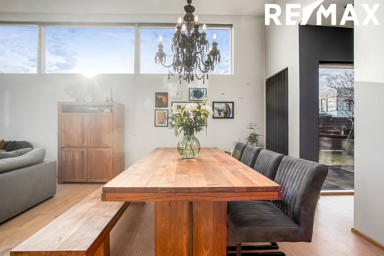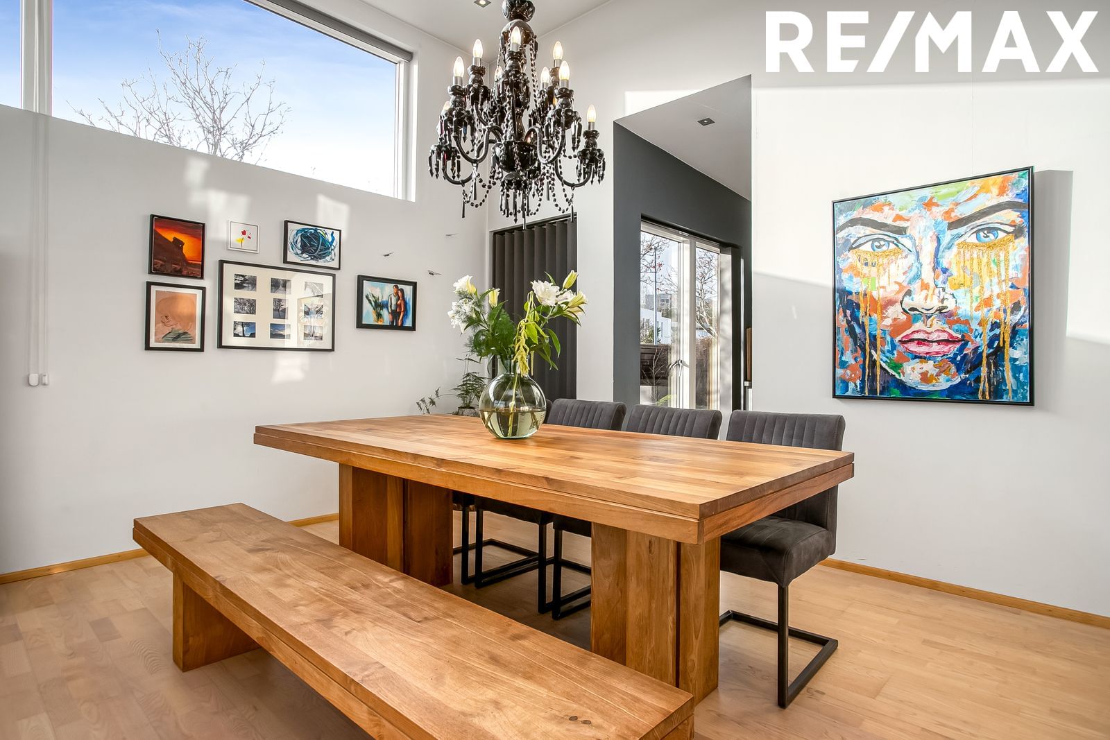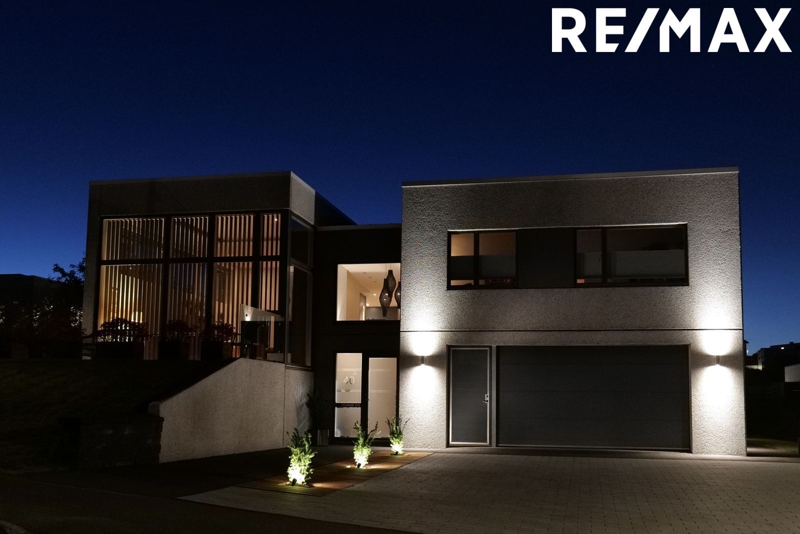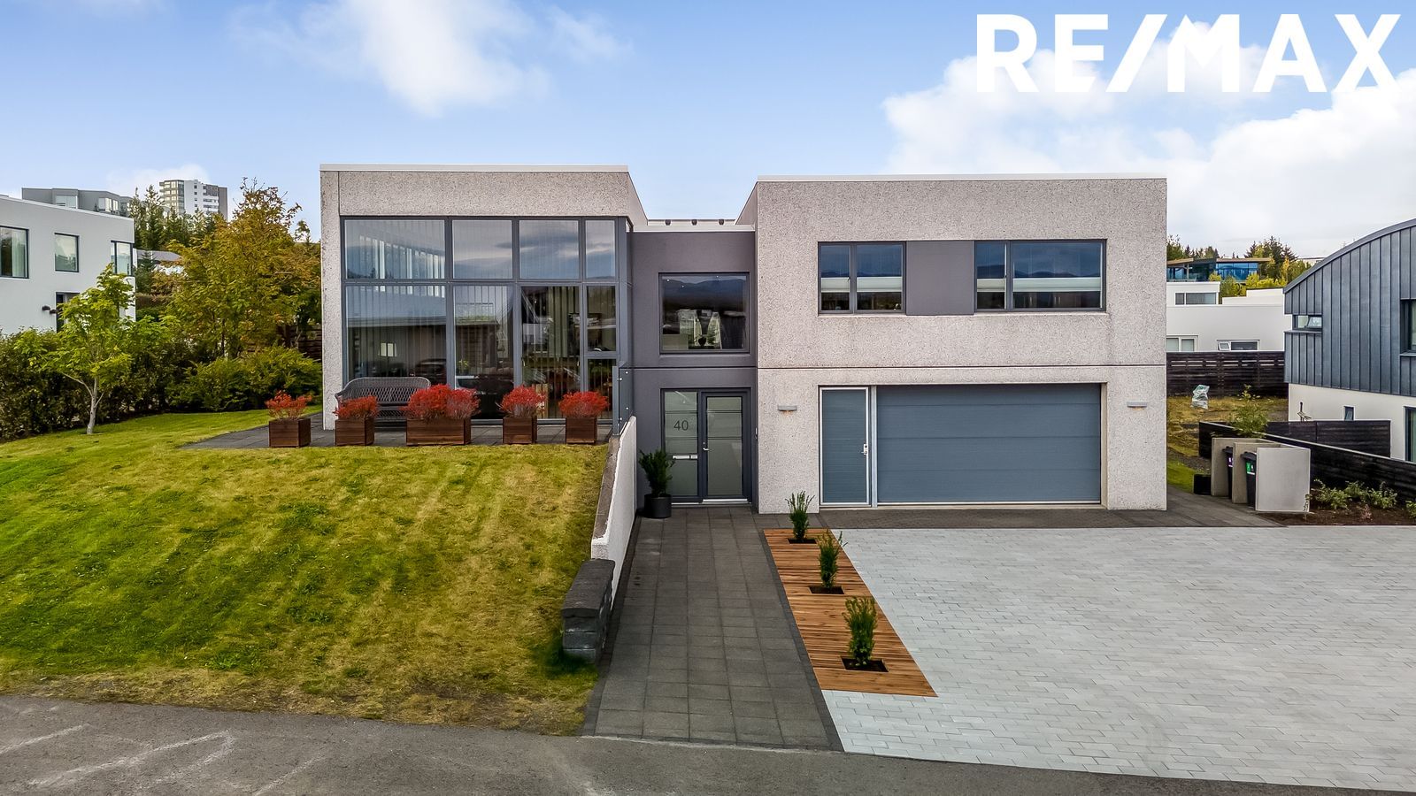 RE/MAX fasteignasala, Þórunn Gísladóttir og Garðar Hólm löggiltir fasteignasalar kynna glæsilegt einbýlishús með aukaíbúð á einstökum útsýnisstað í Kópavogi. Afstaða hússins er góð, innra skipulag frábært, gott flæði og hönnun falleg í alla staði. Húsið er staðsett við Fróðaþing 40, Elliðavatn og Heiðmörk í næsta nágrenni. Útsýni yfir Elliðavatn, Heiðmörk og Bláfjöll. Um er að ræða fallega hannað hús teiknað af Kára Eiríkssyni arkitekt. Húsið er á pöllum og sérstaklega hannað inn í landslagið, þar sem garðurinn verður hluti af rýminu. Við hönnun hússins var sérstaklega haft í huga að náttúruleg birta flæði um öll rými. Aukin lofthæð og gólfsíðir gluggar.