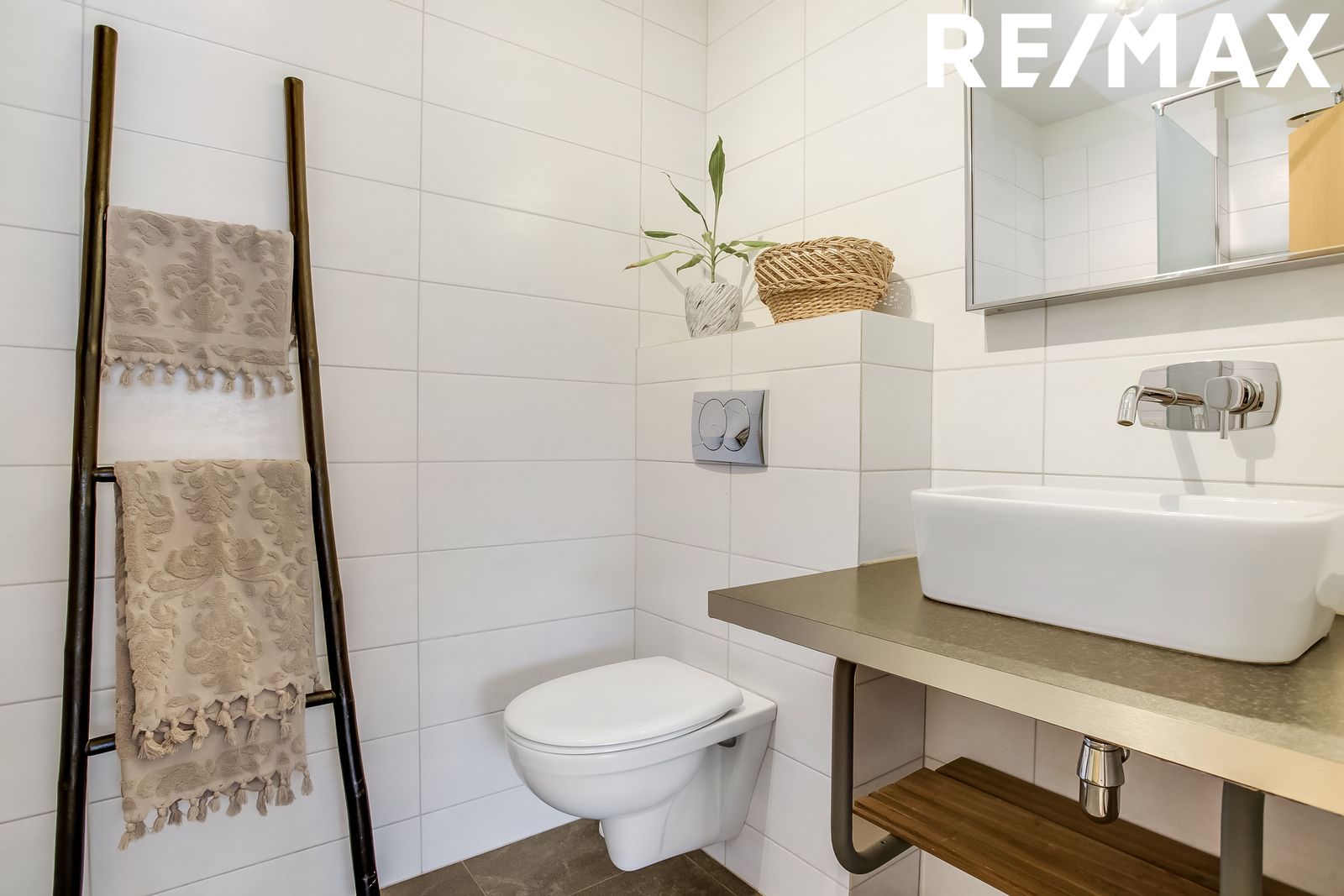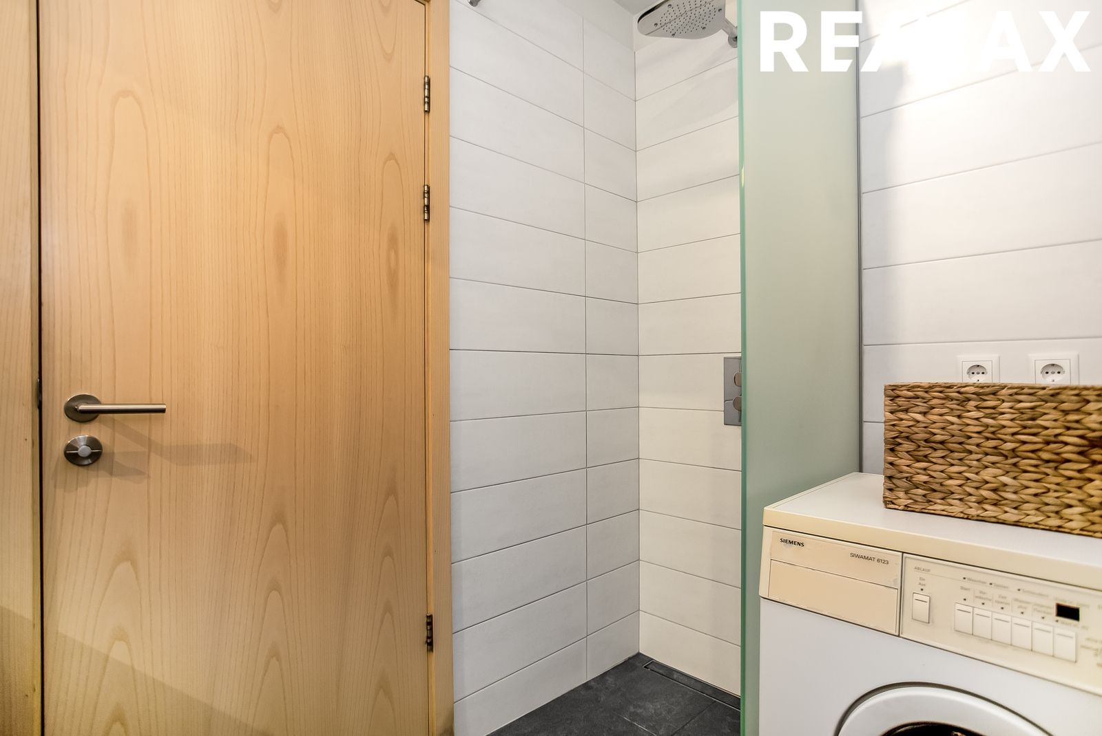 Aukaíbúð er tveggja herbergja með parketi á gólfum, hvít eldhúsinnrétting, baðherbergi flísalagt í hólf og gólf og flísalögð sturta. Sömu sérsmíðuðu hurðar og í aðalrými. Innréttingar og gólfefni er samræmt á milli aukaíbúðar og aðalrýmis og því fallegur heildarsvipur á eigninni allri.