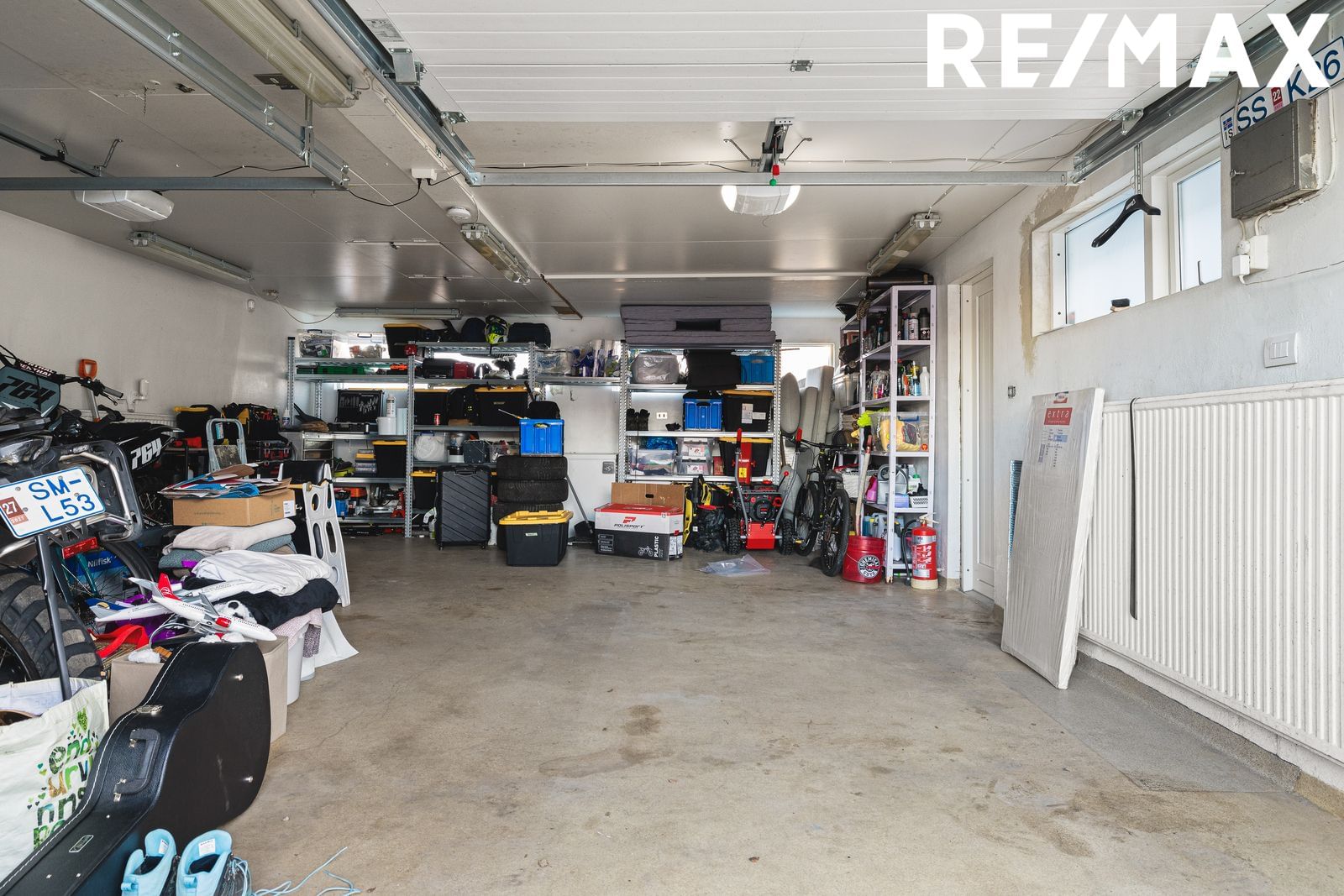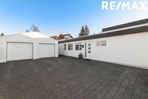 Bílskúr: Er tvöfaldur og rúmgóður 52,9 m² með hita og rafmagni og nýlegu bílskúrshurðum. Hellulögð heimreið og gott bílaplan fyrir framan hús og bílastæði fyri nokkra bíla. Snjóbræðsla í bílaplani en, er orðin léleg svk. seljendum.