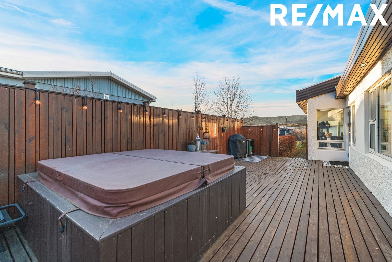 Garður: Lóðin er 960,0 m² og umlykur stór, fallegur og skjólgóður garður húsið. Rúmgóður pallur með heitum potti.