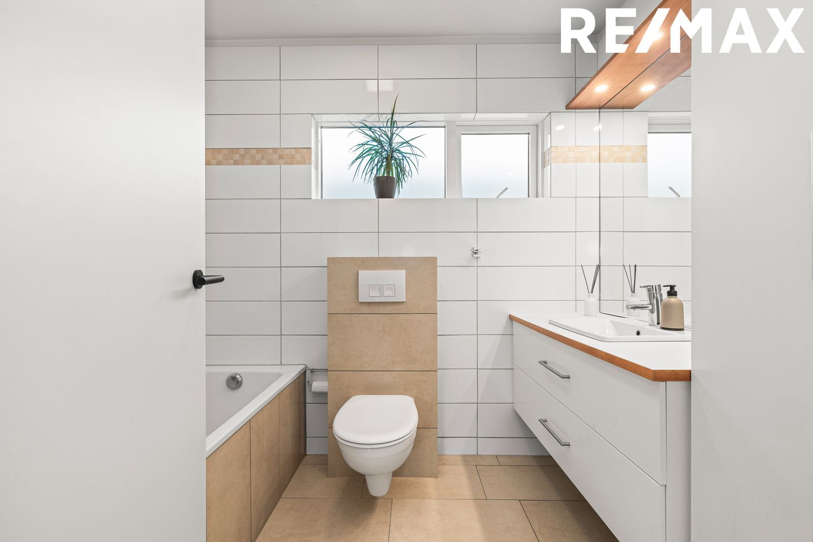 Baðherbergi I: Flíslagt í hólf og gólf. Baðkar og sturta, upphengt salerni, handlaug í góðri innréttingu með góðu skápaplássi. Gluggi með opnanlegu fagi.